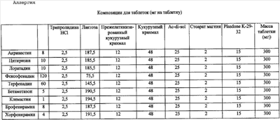 Шкала сонливости Karolinska представлена ниже, а результаты для плацебо, доз 2,5 и 5,0 мг трипролидина показаны в таблицах 4 и 5. Таблица 4 относится к количеству индивидуумов с баллами 1, 2 или 3 по шкале Karolinska, а таблица 5 относится к количеству индивидуумов с баллами 8 и 9. Шкала сонливости Karolinska Должна заполняться через 20 минут после пробуждения, а затем через 2 часа и 4 часа после первой оценки на 5, 6, 7 и 8 день. 1. Чрезвычайно бодрый 2. Очень бодрый 3. Бодрый 4. Скорее бодрый 5. Ни сонный, ни бодрый 6. Некоторые признаки сонливости 7. Сонный, но без усилий, чтобы оставаться в бодрствующем состоянии 8. Сонный, некоторые усилия, чтобы оставаться в бодрствующем состоянии 9. Очень сонный, большие усилия, чтобы оставаться в бодрствующем состоянии, борьба со сном