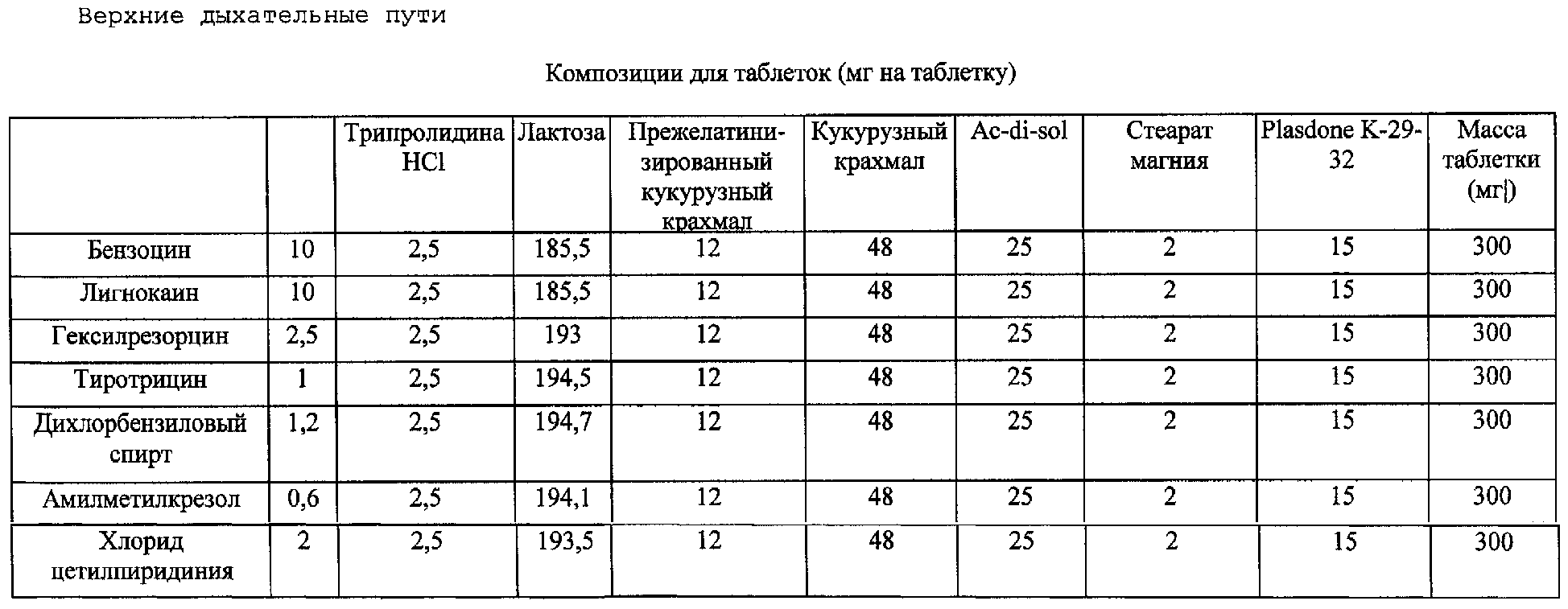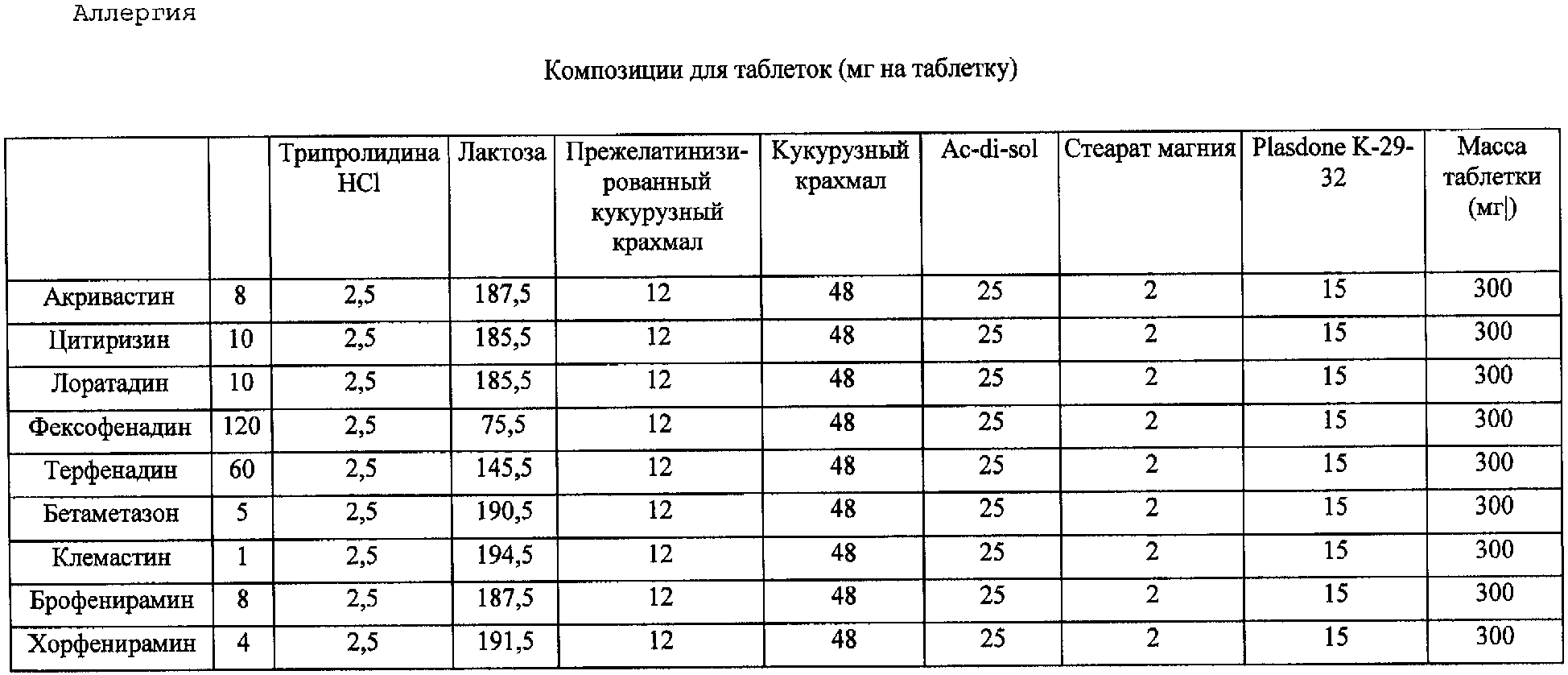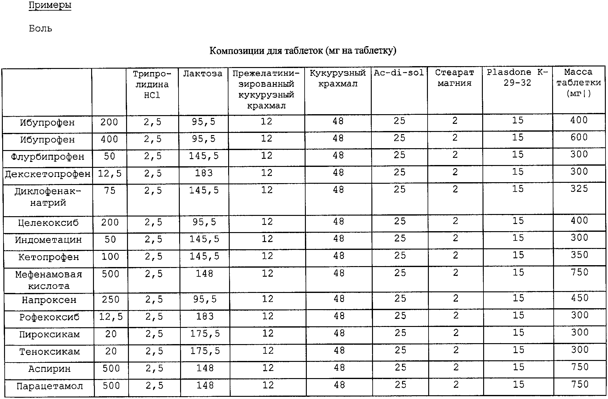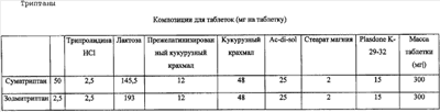 Метод (а) Трипролидина гидрохлорид (1) смешивали приблизительно с половиной компонентов (2)-(5) и тщательно перемешивали. Добавляли оставшиеся компоненты (2)-(5) и перемешивание продолжали до достижения однородного распределения активного ингредиента в смеси. (b) Смесь прессовали в таблетки с содержанием 2,5 мг активного ингредиента с использованием таблетировочной машины. Клиническое испытание Эффективность трипролидина для получения пациентом после пробуждения ощущения свежести или бодрости после приема трипролидина перед отходом ко сну изучали с участием пациентов с нарушениями сна в анамнезе и с использованием трипролидина, изготовленного в соответствии с примером 3. В описываемом в настоящем документе исследовании использовали следующие методики оценки: (а) шкала Karolinska, как описано в Int. J. Neuroscience, 52, 29-37 (1990), и – проверка достоверности: Sleep, 17 (3), 236-41 (1994); (b) протокол регистрации сна Loughborough, как описано в Sleep, 17 (2), 146-159 (1994), и Sleep, 18 (2), 127-134 (1995); (с) актиметрия – актиметры AW4 (Cambridge Neurotechnology) носили постоянно в течение всего исследования. Кнопку нажимали вечером, когда субъект имел желание лечь спать, и вновь утром после того, как субъект вставал с постели. Результаты исследования с использованием актиметра анализировали, как описано Horne et al., Sleep, 17 (2); 146-159). SDI% рассчитывали следующим образом: Это является мерой: 1. Продолжительности времени, которое требуется для того, чтобы заснуть. 2. Любых пробуждений во время периода сна. Выражены как % от общего времени, проведенного в постели. Цели исследования Оценить эффекты двух доз трипролидина по сравнению с плацебо. Дизайн исследования Исследование с использованием множества доз, с контролем плацебо, с использованием параллельных групп, двойное слепое, рандомизированное, в ходе которого изучали эффекты трипролидина в дозах 2,5 мг и 5 мг у пациентов с временным нарушением сна. Кандидатов мужского и женского пола в возрасте 18 лет и старше набирали в одном из пяти исследовательских центров с помощью местной рекламы. Кандидатов отбирали посредством телефонного опроса и выбранных кандидатов приглашали на собеседование в исследовательский центр. Главными критериями включения для выбранных кандидатов для участия в исследовании были следующие. Отмечался плохой сон по меньшей мере в течение 2 ночей в неделю. Отмечался плохой сон в течение по меньшей мере 1 недели, но не более чем 3 месяцев. Нарушение сна не были вызваны сопутствующим заболеванием. Не было избыточного употребления алкоголя или дозированных средств. Нарушение сна влияло на деятельность в дневное время. Кандидаты приходили в исследовательский центр в четверг или пятницу и получали актиметр для ношения на запястье (AW4 (от Cambridge Technology)) для определения исходной величины SDI и дневниковые карточки для записи субъективных оценок для протокола регистрации сна Loughborough и шкалы сонливости Karolinska. Они возвращались в исследовательский центр в понедельник и получали испытуемые композиции (2,5 мг трипролидина, 5 мг трипролидина или плацебо). Исследователь звонил в центр рандомизации, где субъекта рандомизировали в конкретную экспериментальную группу с использованием динамического сбалансированного алгоритма рандомизации. Субъекту давали три дозы распределенного для них испытуемого дозированного средства и инструктировали по приему однокра
