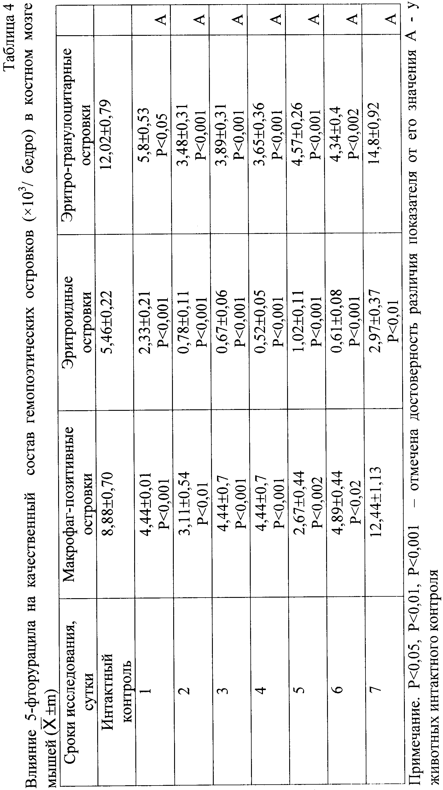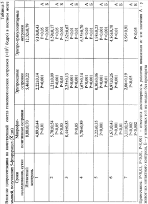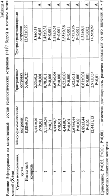 0,001). Изучение цитологических препаратов позволило выявить в этот период статистически достоверное снижение числа эритроидных и эритрогранулоцитарных (смешанных) гемопоэтических островков (табл.4).