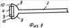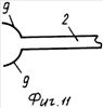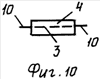 Вторым вариантом устройства-аппликатора является вилкообразный пружинящий, пластинчатый фиксатор (фиг.9) – ухват, исходящий из торцевой части рабочей части стержня 2. При этом валик 4, имеющий свободно выступающие концы 10 оси 3, крепят в пружины концов ухвата 9.
