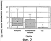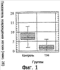 На фиг.2 представлены показатели повреждения легких у поросят, которым делали провоцирующую пробу через 20 недель после вакцинации в соответствии с Примером 4. Среднее значение указано крестиком, нижняя квартиль и верхняя квартиль – рамкой, статистическая медиана – горизонтальной линией в рамке, размах от минимального до максимального значения – вертикальной линией.