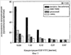 Оба антитела значительно ингибировали связывание EGF-FITC во всех концентрациях. Тем не менее, смесь обоих антител во всех случаях была более эффективна по сравнению с каждым антителом, применяемым отдельно (фигура 3).