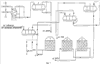 При больших расстояниях от трапов первой ступени сепарации (3) и неблагоприятных условиях по рельефу местности дальнейший транспорт нефти с растворенными в ней оставшимися газами осуществляется дожимными насосами (4) через сборную емкость (5) на вторую ступень сепарации, которая как и третья ступень (при необходимости) проводится уже на централизованных пунктах сбора и подготовки нефти и газа в трапах-сепараторах второй (6) и третьей ступени (7), объем и количество которых мало чем отличается от первой ступени. На второй ступени сепарации в условиях технологии отсепарированная часть газа из трапов (6) поступает в газовую линию, а нефть, содержащая остатки растворенного газа, транспортируется на следующую ступень сепарации в трапы-сепараторы (7). На третьей ступени сепарации из нефти выделяется остаточная часть газа, которая объединяется с газовым потоком второй ступени в общем коллекторе и поступает на газобензиновый завод (ГБЗ). Нефть после трапов сепарации третьей ступени (7) представляет собой водонефтяную эмульсию и поступает в технологические сборные наполнительные емкости с понтонами (8).