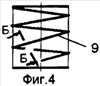 Чтобы повысить степень очистки газового потока от целевого компонента за счет увеличения площади контакта адсорбента с целевым компонентом, адсорбент 9 по форме может быть выполнен в виде полых шаров, на сферической поверхности которых прорезана винтовая канавка (фиг.3), или в виде полых шаров, на сферической поверхности которых прорезана винтовая канавка, имеющая в сечении, перпендикулярном винтовой линии, профиль типа «седла Берля» или седла «Инталлокс» (фиг.5). Адсорбент 9 может быть выполнен в виде цилиндрических колец, на боковой поверхности которых прорезана винтовая канавка (фиг.4). Адсорбент 9 может быть выполнен в виде цилиндрических колец, на боковой поверхности которых прорезана винтовая канавка, имеющая в сечении, перпендикулярном винтовой линии, профиль типа «седла Берля» или седла «Инталлокс» (фиг.5). Адсорбент 9 может быть выполнен в виде тороидальных колец (на чертеже не показано). Адсорбент 9 может быть выполнен в виде тороидальных колец, имеющих профиль типа «седла Берля» или седла «Инталлокс» (на чертеже не показано).