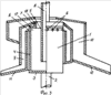 В варианте исполнения на фиг.2 кольцевой порог 7 расположен таким образом, что между торцом боковых стенок 4 чаши и кольцевым порогом 7 образована щель 13. Края 14 боковых стенок 4 отогнуты наружу чаши и в щели 13 между кольцевым порогом и краем 14 боковых стенок чаши закреплено кольцо 15. В нем выполнены сквозные радиальные отверстия 16. Кольцевой порог 7 может быть выполнен П-образной или Г-образной формы в сечении (фиг.3). Его полки 17,18 направлены наружу, а основания образуют горлышко 19 для прохода легкой фракции материала.