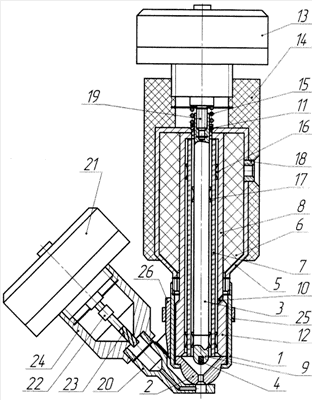 Портативный плазмотрон для напыления и наплавки покрытий работает следующим образом. В емкость дозатора 24 засыпают порошок для осуществления процесса напыления или наплавки. Через отверстие для подачи пара 18 с помощью гибкого трубопровода подают пар рабочей жидкости, например воды, и подают пар, который равномерно распределяется в резервуаре для приема пара 5 в среде пористого проницаемого материала 6, например минерального войлока. Пар проходит через зону плазмообразования между катодом 9 и соплом-анодом 2, а затем выходит через отверстие сопла-анода 2 и проходит через отверстие питателя 20. На пару электродов катод 9 и сопло-анод 2 подают осциллирующее напряжение, пробивающее межэлектродный зазор, а затем рабочее напряжение, которое вызывает образование рабочей дуги. Дуга сжимается и вытягивается потоком пара, образуя плазменный факел. Оптимальный межэлектродный зазор устанавливается оператором вручную поворотом по часовой стрелке или против часовой стрелки мотор-редуктора 13 по резьбе с натягом пластмассовой облицовки 14. Это приводит, соответственно, к увеличению или уменьшению межэлектродного зазора, что контролируется по величине изменяющегося напряжения между катодом и соплом-анодом. Установив требуемое напряжение, оператор включает напряжение механизма сервопривода катода, который при падении или повышении напряжения дуги, происходящего вследствие выгорания электродов, тепловой деформации деталей портативного плазматрона, а также изменения напряжения на источнике питания, приводит во вращение по часовой стрелке или против часовой стрелки выходного вала 19 мотор-редуктора 13 с трапецеидальной резьбой с зазором, на которой установлен катододержатель, что в свою очередь вызывает перемещение в осевом направлении катододержателя 25 с закрепленным на нем катодом 3, поддерживая установленный межэлектродный зазор по величине напряжения дуги. После прогрева в течение 10-20 секунд портативного плазмотрона подают напряжение на мотор-редуктор 21, установленный на дозаторе 24, крутящий момент с выходного вала мотор-редуктора 21 передается через упругую муфту 22, выполненную, например из резины, на шнек 23. Частицы порошка захватываются канавками шнека 23 и попадают через выходное отверстие дозатора 24 в питатель 20, откуда за счет эффекта эжекции, возникающего в рабочем отверстии питателя 20, вытягиваются из его полости через канал в рабочее отверстие, где попадают в плазменный факел, разогреваются, ускоряются и выносятся на напыляемую или наплавляемую поверхность. Подача порошка плавно и точно регулируется изменением величины напряжения, подаваемого на мотор-редуктор 21, грубо и дискретно сменой шнека с другим количеством, глубиной или углом наклона винтовых канавок. При осуществлении процесса напыления расстояние от рабочего отверстия питателя 20 до напыляемой поверхности составляет 15-30 миллиметров, а при осуществлении процесса наплавки 4-8 миллиметров, при этом скорость подачи порошка уменьшается.