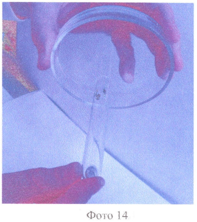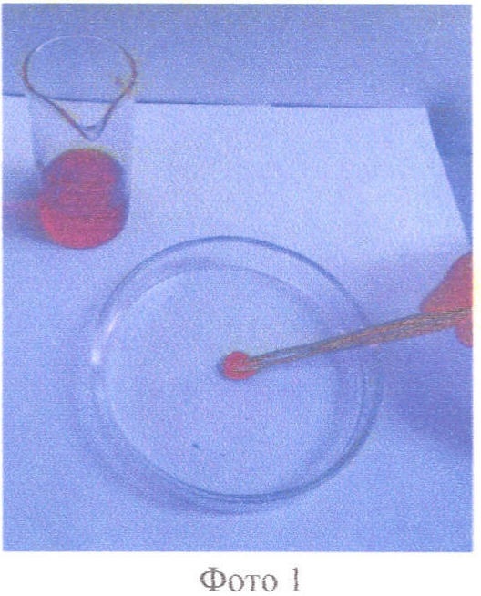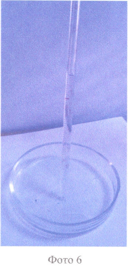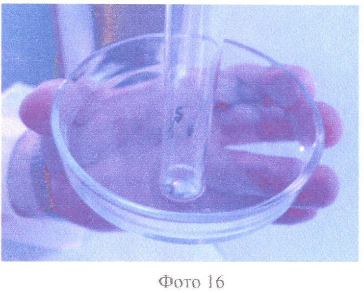 Фото 6. Нанесение 1 мл раствора хлористого метилена, загрязненного ртутью, на чашку Петри.