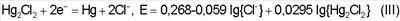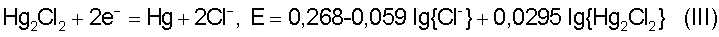 E=0,63-0,054 lg{Cl–}+0,059 lg{HgCl2}-0,0295 lg{Hg2Cl2}