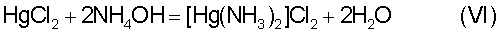Во-вторых, хлорид аммония повышает эффективность демеркуризации за счет вероятного образования малорастворимого двухъядерного комплекса [Hg(NH3)2]Cl2, который снижает окислительно-восстановительный потенциал реакции (I).