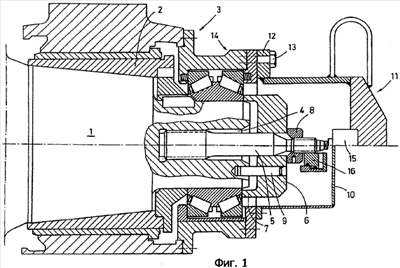 Однако также известно, что подшипниковый узел оснащен выступами, окружающими обе боковые стороны гайки, так что при навинчивании гайки происходит затягивание подшипникового узла, а при отвинчивании гайки его снятие. При этом часто требуется прилагать значительные усилия, чтобы гайку зацепить тросом, а затем с помощью крана снять ее. Эти методы для затягивания и снятия гаек чрезвычайно опасны, так как это может привести к травмам обслуживающего персонала при обрыве находящегося под нагрузкой троса.
