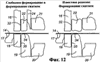 фиг.12 – сравнительный вид спереди в вертикальном поперечном разрезе известного формовочного устройства (на чертеже справа) и одного из новых вариантов осуществления настоящего изобретения (на чертеже слева) в процессе формирования;