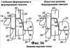 фиг.15 – сравнительный вид спереди в вертикальном поперечном разрезе известного формовочного устройства (на чертеже справа) и одного из новых вариантов осуществления настоящего изобретения (на чертеже слева) в процессе формирования;