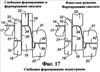 Фиг.17 – сравнительный вид спереди в вертикальном поперечном разрезе известного формовочного устройства (на чертеже справа) и одного из новых вариантов осуществления настоящего изобретения (на чертеже слева) в процессе формирования;