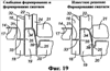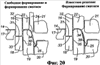 фиг.19 – сравнительный вид спереди в вертикальном поперечном разрезе известного формовочного устройства (на чертеже справа) и одного из новых вариантов осуществления настоящего изобретения (на чертеже слева) в процессе формирования;