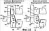 фиг.21 – сравнительный вид спереди в вертикальном поперечном разрезе известного формовочного устройства (на чертеже справа) и одного из новых вариантов осуществления настоящего изобретения (на чертеже слева) в процессе формирования;