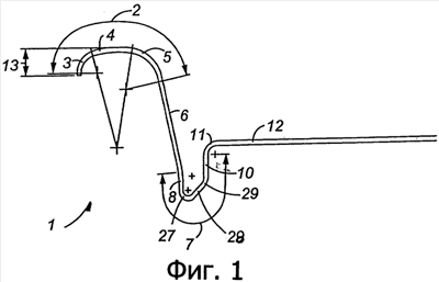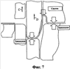 На фиг.6 и 7 представлен вид спереди в вертикальном поперечном разрезе известного устройства, используемого для формирования торцевой крышки, как указано в патенте США 5685189, выданном на имя Нгуэна (Nguyen) и Фарли (Parley). Более конкретно, указывается положение торцевой крышки 1 и стрелками показаны точки приложения зажимного усилия к закатываемой панели и к центральной панели торцевой крышки. Более конкретно номера позиций на этих чертежах (см. фиг.5D и 5Е) указаны в описании изобретения к патенту ‘189, который посредством ссылки на него полностью включается в данное описание.