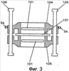 Как показано на Фиг.2 и 3, блок опок содержит верхнюю опоку 104 и нижнюю опоку 105. Каждая опока содержит приспособления, которые идентичны приспособлениям опоки F в соответствии с настоящим изобретением. Поскольку профиль верхней опоки 104 не обязательно должен быть идентичен профилю нижней опоки 105, они могут различаться.