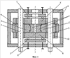 1. Устройство для непрерывного горизонтального литья и деформации металла, содержащее составной кристаллизатор с отверстием в верхней части, имеющий нижнюю, верхнюю и пару боковых стенок, установленных с возможностью перемещения, нижняя и верхняя стенки которого выполнены с возможностью перемещения со смещением по фазе относительно перемещения пары боковых стенок, отличающееся тем, что нижняя и верхняя стенки кристаллизатора выполнены с углублениями на рабочих поверхностях, формирующих внутреннюю полость кристаллизатора, углубления расположены симметрично относительно продольной плоскости симметрии верхней и нижней стенок кристаллизатора, при этом ширина области расположения углублений составляет одну треть общей ширины стенки.