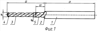 Хвостовик 1 обеспечивает крепление инструмента в средстве, обеспечивающем его вращательное движение. В качестве такого средства может быть использован патрон ручной машины для ударно-вращательного сверления. В одном из вариантов длина L1 хвостовика 1 может быть увеличена до 5 см сверх ее величины, необходимой для крепления хвостовика в патроне сверлильной машины, для обеспечения возможности визуального контроля степени углубления сверла инструмента в изделие.