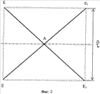 На фиг.2 показана развертка поверхности трубы в области разметки и расположение лент на ней. Область представляет собой прямоугольник, по диагоналям которого расположены ленты. Высота прямоугольника равна периметру трубы *D. Точка А представляет собой точку пересечения середин двух лент, и, соответственно, удалена от линии Е E1 на половину периметра.
