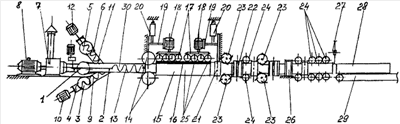 На чертеже изображена схема способа производства композиционной шпалы прокатом.