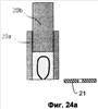 Затем многослойную порцию в расплавленном состоянии переносят из транспортировочной формы в пресс-форму. Способ переноса кратко проиллюстрирован на Фигурах с 24а по 24с. Первый этап этого способа, проиллюстрированный Фигурой 24а, состоит в отделении или открытии крышки 21, поверхность которой контактирует в нижней поверхностью многослойной порции материала. Затем порцию материала выталкивают из транспортировочной формы 19 при помощи поршня 20b, как показано на Фигуре 24b. Фигура 24с изображает многослойную порцию материала, размещенную в полости пресс-формы 23.