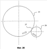 Устройство для получения многослойных изделий из формованной порции материала схематически изображено на Фигуре 26. Это устройство состоит из первой карусели 25, содержащей формы, средства для сжатия порций материала и средства для выталкивания сформованных изделий. Это устройство также содержит вторую карусель, содержащую транспортировочные формы 19, средства для последовательной подачи полимеров в транспортировочные формы, средства для увеличения объема полостей транспортировочных форм при подаче полимеров в формы, а также средства для переноса порций материала в пресс-формы. Перенос порций материала осуществляется в точке пересечения 27 траекторий движения транспортировочных форм и пресс-форм. Устройство также содержит средства для приведения каруселей в движение и средства для регулирования и контроля параметров.