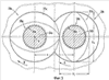 фиг. 3 – разрез двух расположенных относительно друг друга в положении их установки экструдерных шнеков, которые при работе вращаются в одинаковом направлении и находятся в зацеплении друг с другом;
