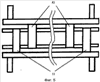 Каждый цикл состоит из прижима рабочих элементов сварочного аппарата 5 к двум лентам, опирающимся попеременно комплексами платформ 11 и 12. Все платформы 11 и 12 каждого комплекса прикреплены к консольному комплекту 13 и 14 и подаются одновременно в вырезы 17 в корпусе 1. При первом цикле сварки на платформы 11 и 12 помещаются две ленты, а при очередных циклах на платформы 11 и 12 передвигаются по одной ленте. Сварочный аппарат 5 продвигается вдоль корпуса 1 с колебательным движением. Амплитуда этого движения равняется половине промежутка между соседними швами.