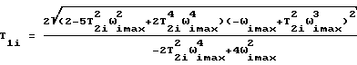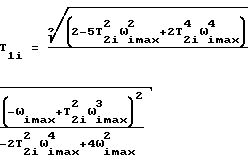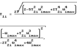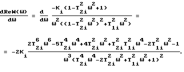Рассмотрим передаточную функцию:![]() Положив p = j , получим:![]() Выделим действительную и мнимую части этой передаточной функции: ![]() ![]() Исследуем вещественную часть на экстремум. Для этого найдем производную: ![]() Приравниваем производную к нулю при ![]() ![]() Рассмотрим числитель этого выражения: ![]() В результате решения этого уравнения получим формулу для определения постоянной времени демпфирования по экстремальным точкам АФЧХ для динамических систем, представляющих собой произведение двух интегрирующих и колебательных звеньев: ![]() где imax и 1i – частоты, соответствующие экстремальным значениям мнимой и вещественной части АФЧХ, построенной по формуле (3).