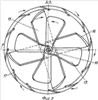 Так как у заявляемого осевого вентилятора-движителя смежные винты вращаются в противоположных направлениях, наиболее близким аналогом его, принятым за прототип, является тяговый движитель, широко применяемый в авиации – Б.К.Гусев, В.Ф.Докин, “Основы авиации”, Транспорт, М. 1982 г. Такой тяговый соосный движитель с лопастными винтами снабжен специальным механизмом, позволяющим вращаться в противоположных направлениях соосно установленным винтам, которые в этом случае имеют меньший диаметр. Однако в любых известных конструкциях осевых вентиляторов-движителей конструктивно может быть использована только одна пара противоположно вращающихся соосных винтов, что ограничивает уменьшение габаритов.