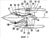 Передняя часть 12 корпуса разделена на предохранительный корпус и промежуточный корпус, при этом предохранительный корпус расположен вокруг вентилятора 11, а промежуточный корпус расположен вокруг направляющих лопаток 19 и опорных кронштейнов 20. Конструкция передней части 12 корпуса не представлена более подробно, и далее в описании передняя часть 12 корпуса упоминается как целый узел.