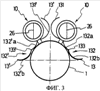 Каждый кожух 13, 13′ вентилятора открывается с разделением на две части (131, 132), (131′, 132′). Одна часть 131, 131′ шарнирно откидывается вверх от трд 10, а другая часть 132, 132′ шарнирно откидывается вниз от трд 10. Часть 132, 132′, которая шарнирно откидывается вниз, соединена в двух местах (132а, 132b), (132’а, 132’b) шарнирами 133, 133′. Таким образом, угол открытия и, следовательно, пространство доступа к трд 10, открываемого при откидывании двух частей (131, 132), (131′, 132′) кожуха 13, 13′ вентилятора, увеличивается больше, чем без шарнира. Доступ к вспомогательным средствам 22, 23, 24, 25 в целом облегчен независимо от положения трд.