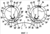 Вспомогательная коробка 25 передач расположена на нижней части передней части 12 корпуса вблизи вертикальной плоскости 26 вдоль направляющих лопаток 19 ниже по потоку. Вспомогательная коробка 25 передач содержит генераторы для трд и летательного аппарата, топливные и масляные насосы, стартер и различные вспомогательные устройства с механическим приводом от вала трд в точках отбора мощности. Аналогично, она выполнена таким образом, что имеет минимальную поверхность соударения, если диск одного из роторов, расположенного напротив трд разорвется.