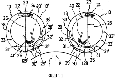 При этом вспомогательные устройства 22, 23, 24, 25 одного трд 10 расположены относительно другого трд 10 таким образом, что к ним нет доступа, или доступ к ним затруднен в случае, если разорвется диск одного из роторов в другом трд 10.
