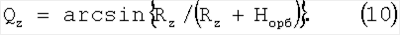 Qz – угол полураствора видимого с КА диска Земли, измеряемый от направления от КА на центр Земли;