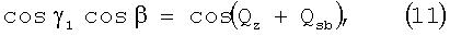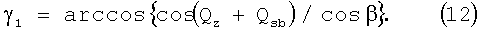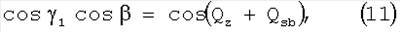 Из решения прямоугольного сферического треугольника, образованного направлениями T1C1, T1O, T1K1, в котором угол C1T1K1= , угол C1T1O=Qz+Qsb, угол OT1K1= 1, получаем: