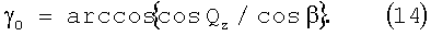 Из решения прямоугольного сферического треугольника, образованного направлениями Т0С0, Т0О, Т0К0, в котором угол С0Т0К0= , угол C0T0O=Qz, угол ОТ0К0= 0, получаем: