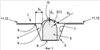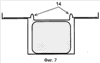 Первая модификация (фиг.1, 2, 3) указанной фиксации крышки-фиксатора заключается в том, что по периметру коррекса 3 (или рамки этого коррекса, рамка не показана) либо выполнен один протяженный по всему периметру буртик 11 (фиг.11a), либо выполнены по крайней мере два локальных буртика 12 (фиг.11б). В последнем случае буртики расположены в противоположных углах коррекса и каждый из них имеет в плане форму угла, повторяющего соответствующий угол коррекса. При этом крышка 1 своим периметром сопряжена с указанными буртиками или буртиком, так что буртики (буртик) препятствуют любым горизонтальным перемещениям крышки 1 относительно коррекса 3.