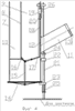 На этой же стенке снаружи закреплена стойка 21 с возможностью перемещения вдоль канала 9 в кронштейнах 22 и 23. Над кронштейном 22 жестко закреплена на стойке 21 шайба 24, а под кронштейном 23 на стойке 21 размещена сжатая пружина 25. Сочетание шайбы 24 и пружины 25 определяет крайнее нижнее положение конца стойки 21 ниже дна теплообменника.