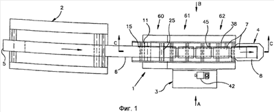Фиг.3 показывает схематический вид сбоку, в направлении стрелки A, машины согласно Фиг.1;