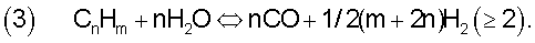 Каталитический реформинг с водяным паром и/или с диоксидом углерода углеводородного сырья представляет собой процесс, в котором углеводородное сырье реагирует с водяным паром и/или диоксидом углерода, образуя синтез-газ, обогащенный водородом и оксидом углерода. Ключевые реакции следующие: