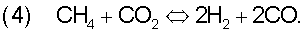 Реформинг с диоксидом углерода углеводородов иллюстрируется ниже для метана: