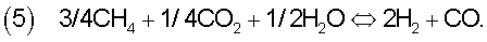 Объединенный реформинг углеводородов с водяным паром и диоксидом углерода иллюстрируется ниже для метана: