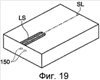 Напротив, как показано на Фиг.19, при использовании пятна LS’ луча по настоящему изобретению участок по линии SL, вдоль которой нужно разделить материал, не облучался пятном LS’ луча, и внутреннее поле напряжения сжатия 150 было создано под участками вблизи и по обе стороны от линии, вдоль которой нужно разделить материал, и, таким образом, оно не было создано непосредственно под линий, вдоль которой нужно разделить материал. Соответственно возможно создать прямую вертикальную трещину, и при разделении может быть получена разделенная поверхность подложки, которая может считаться прекрасной.