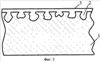 На Фиг.1-3 схематично представлен фрагмент керамической подложки в разрезе на разных стадиях обработки. Позицией 1 обозначена подложка, позицией 2 – частички металла, введенные в верхний слой подложки и позицией 3 обозначен слой металлического покрытия, наносимого на керамическую подложку 1.