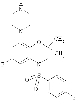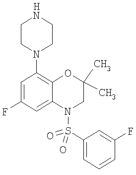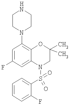 | 6-Фтор-4-(2-фторбензолсульфонил)-2,2-диметил-8-пиперазин-1-ил-3,4-дигидро-2Н-бензо[1,4]оксазин |