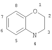 В общем случае номенклатура, использованная в описании заявки, основана на программном обеспечении AUTONOMTM версия 4.0 компьютерной системы института Бельштейна для формирования систематической номенклатуры ИЮПАК. При этом нумерация атомов в бензоксазиновых соединениях производится в соответствии с номенклатурой ИЮПАК, как указано ниже.