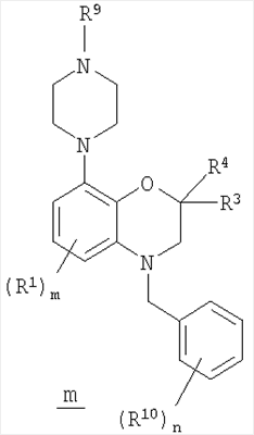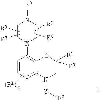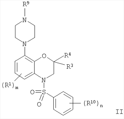 Соединения по изобретению включают бензоксазиновую циклическую систему, содержащую 2,2-диалкил- или другие заместители в положении 2, которая неожиданно обладает более высоким сродством к рецепторам 5-гидрокситриптамина, прежде всего 5-НТ6, причем такое сродство обнаружено у соединений, в которых бензоксазиновая циклическая система содержит только один атом водорода в положении 2.