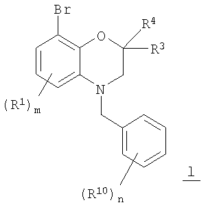 где n равно от 0 до 5, каждый R10 независимо означает галоген или циано, а m, R1, R3, R4 и R9 имеют значения, указанные в п.1.